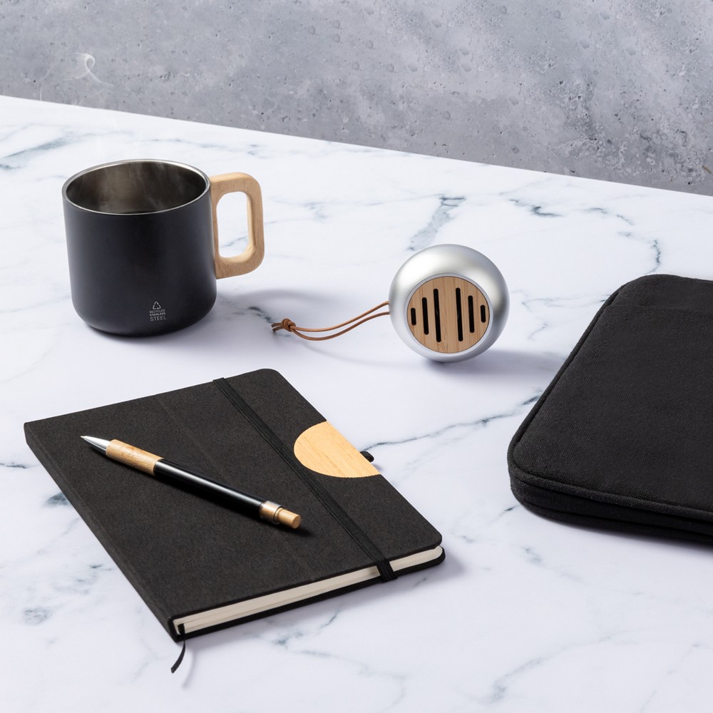 Der Edelstahlbecher „Ashley“ ist ein umweltfreundlicher Begleiter für unterwegs. Mit einem Fassungsvermögen von 400 ml und hergestellt aus recyceltem Edelstahl, hält er Getränke länger warm oder kalt. Die doppelwandige Konstruktion sorgt für eine optimale Isolierung, während der Holzgriff einen natürlichen und eleganten Touch verleiht. Genießen Sie Ihre Lieblingsgetränke stilvoll und tragen Sie gleichzeitig zum Umweltschutz bei.