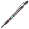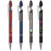Der „ChromeWrite“ Softy Recycling Kugelschreiber mit Stylus kombiniert Nachhaltigkeit und Eleganz. Gefertigt aus recyceltem Aluminium, erhält das Schreibgerät einen umweltfreundlichen Touch. Die verchromten Akzente werden durch einen stilvollen schwarzen Stylus ergänzt, der dem Kugelschreiber eine edle Note verleiht. Die glänzende Chrom-UV-Beschichtung auf den Zierteilen verstärkt das hochwertige Erscheinungsbild zusätzlich. Mit fälschungssicherer Dokumenten-Tinte in Blau oder Schwarz und einer schlanken 1,0-mm-Spitze garantiert die Mine ein flüssiges und präzises Schreibgefühl.