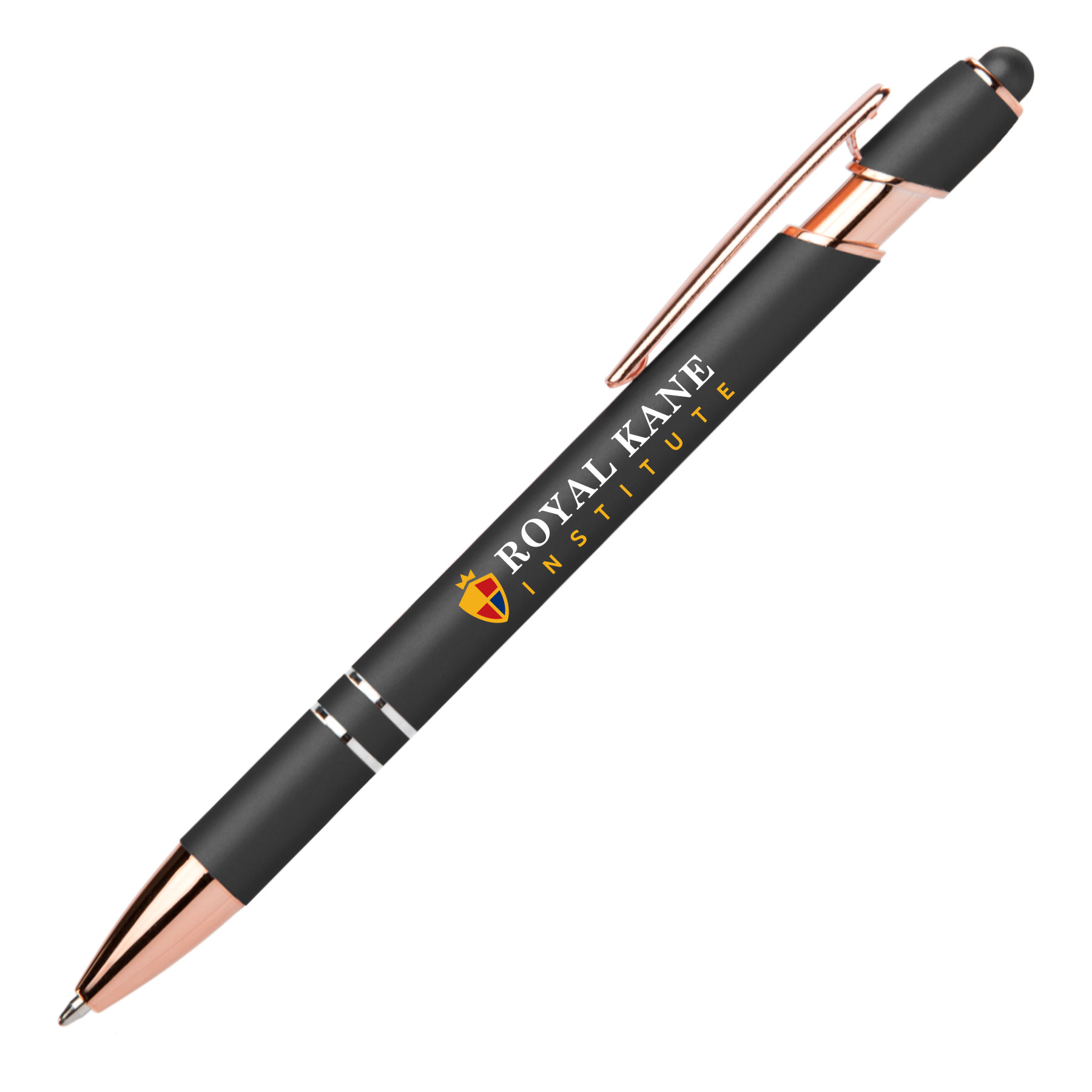 Der „GoldMark“ Soft-Touch Roségold Metallic mit Stylus ist ein eleganter Kugelschreiber, der Stil und Funktionalität vereint. Mit seinen trendigen Roségold-Designelementen und der wahlweise blauen oder schwarzen Schreibfarbe ist er ein echter Hingucker. Die metallic Soft-Touch-Oberfläche, farblich perfekt abgestimmt, verleiht dem Kugelschreiber eine edle Haptik, während der passende Stylus ideal für die Nutzung von Touchscreens ist. Dank unserer präzisen Lasergravur oder vollfarbigen Digitaldruck wird Ihr Firmenname, Logo oder Werbeslogan optimal in Szene gesetzt. Dieses exklusive Schreibgerät wird garantiert zu einem Favoriten Ihrer Kunden!