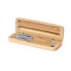 Das Schreibset „Bruce“ ist die perfekte Kombination aus Eleganz und Nachhaltigkeit. Das Set besteht aus einem Bambusgehäuse, in dem sich ein Kugelschreiber und ein Rollerball-Stift mit Bambusfassung und silbernen Details befinden. Die natürliche Schönheit des Bambus verleiht diesem Schreibset eine besondere Note. Mit „Bruce“ können Sie stilvoll schreiben und gleichzeitig einen Beitrag zum Umweltschutz leisten. Ein Must-Have für jeden Schreibliebhaber!