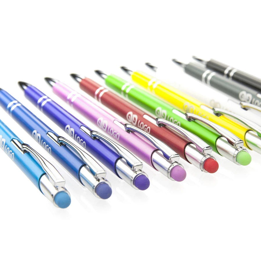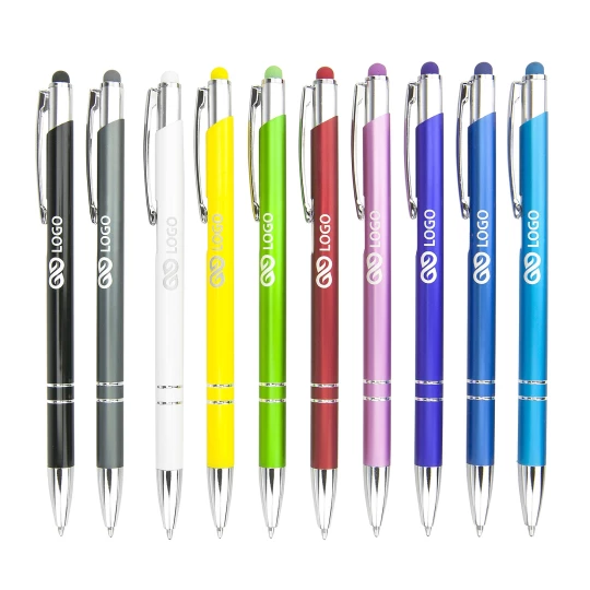 Der Touchpen Kugelschreiber „Theresa“ besticht durch seine farbenfrohe, sanft mattierte Metallhülle, die von glänzenden Silberelementen verziert wird. Ausgestattet mit einem reibungslosen Druckmechanismus und einem robusten Clip, lässt er sich leicht an Dokumenten oder der Jackentasche befestigen. Der Kugelschreiber verfügt über eine austauschbare Mine, was eine langjährige Nutzung ermöglicht. Mit der Option einer Lasergravur von Logo oder Wunschtext auf der Hülle, wird „Theresa“ zu einem praktischen Werbegeschenk für Ihr Unternehmen.